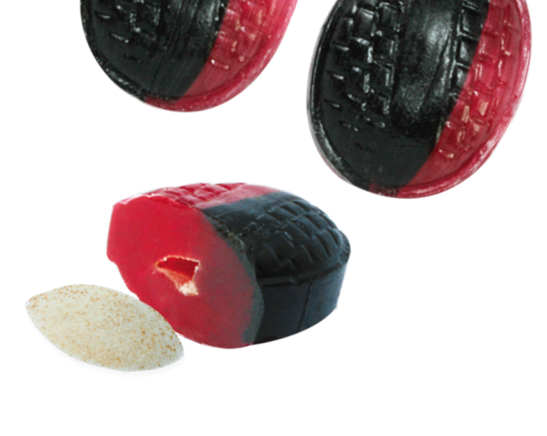 Bringebær/lakris m. pulver